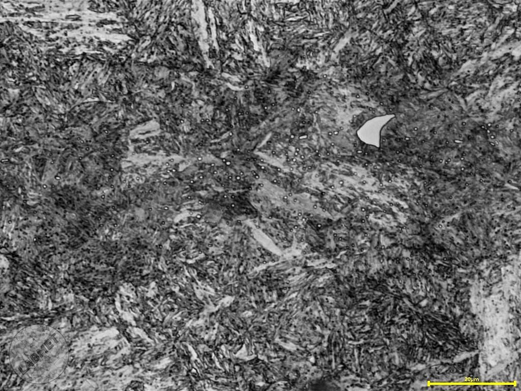 Stan materiału na mikrofotografiach: hartowanie + średnie odpuszczanie.