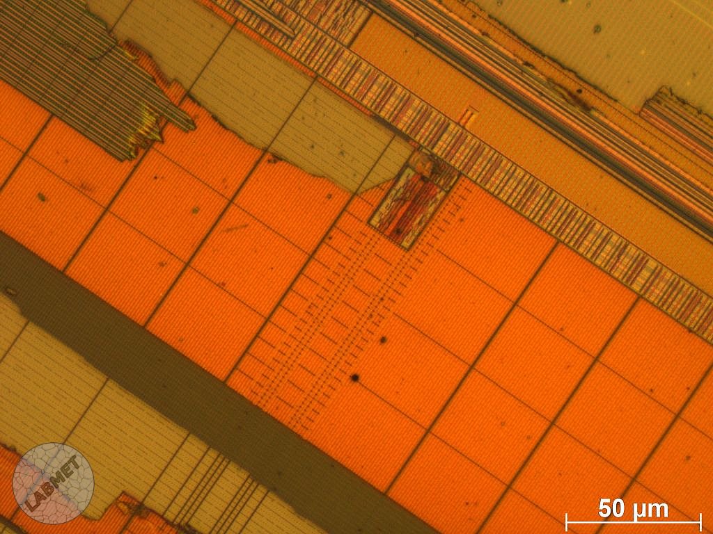 Struktura litografii fragmentów rdzenia procesora Intel Corei5 3470 widoczna w zakresie powiększeń możliwych do uzyskania przez mikroskop optyczny. Procesor wykonany jest w litografii 22 nm co jest poniżej możliwości obserwacyjnych w zakresie mikroskopii optycznej (zbyt mała rozdzielczość). Na przedstawionych mikrofotografiach widoczne są bloki lub poszczególne układy procesora a nie pojedyncze elementy elektroniczne lub ścieżki. Widoczne na mikrofotografiach rozwarstwienia i inne uszkodzenia litografii jest to efekt mechanicznego wyłamania fragmentów krzemowego podłoża z obudowy procesowa. Obserwacje prowadzono na wyłamanych fragmentach krzemowego rdzenia.